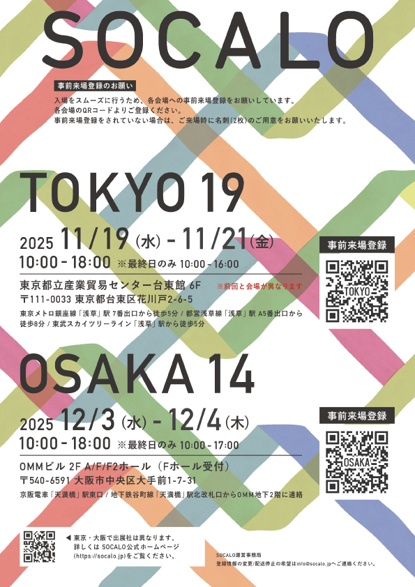 インテリア・雑貨の合同展示会「SOCALO」(ソカロ)に東京展、大阪展に出展します。